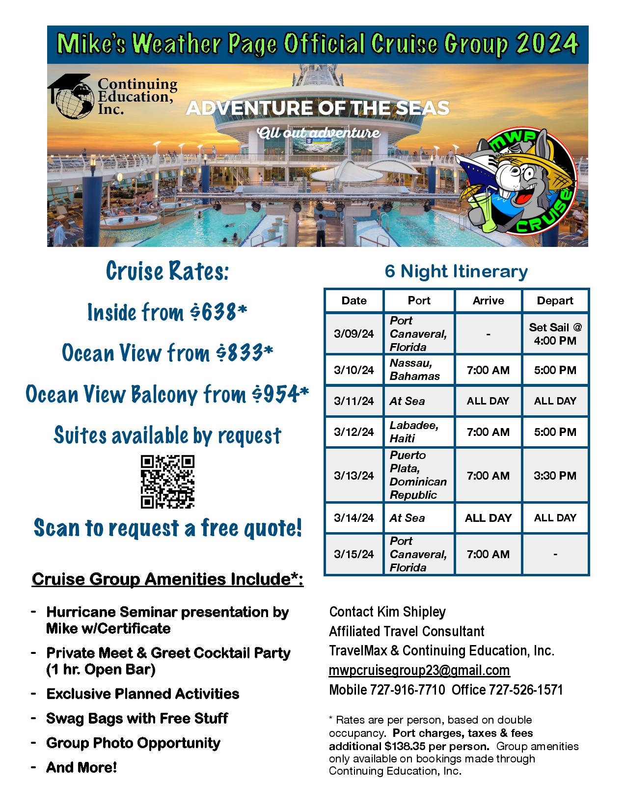 Contact Info / Travel Consultant: Call/Email Kim Shipley to Book: 727-916-7710 mwpcruisegroup23@gmail.com MWP Cruise Information: Pleased to have Travelmax handling our 2023 Cruise. They specialize in special event cruises like ours! SIGN UP HERE See more specific info: Adventure of the Seas / Labadee Video Travelmax Information: U.S. Top 10 Ranked Travel Company "Our qualified experts have been assisting travelers for nearly 30 years, planning every detail of unforgettable vacations and seamless business trips to perfection. We are happy to provide this service, because travel is our passion and our life." Read More about Travelmax |